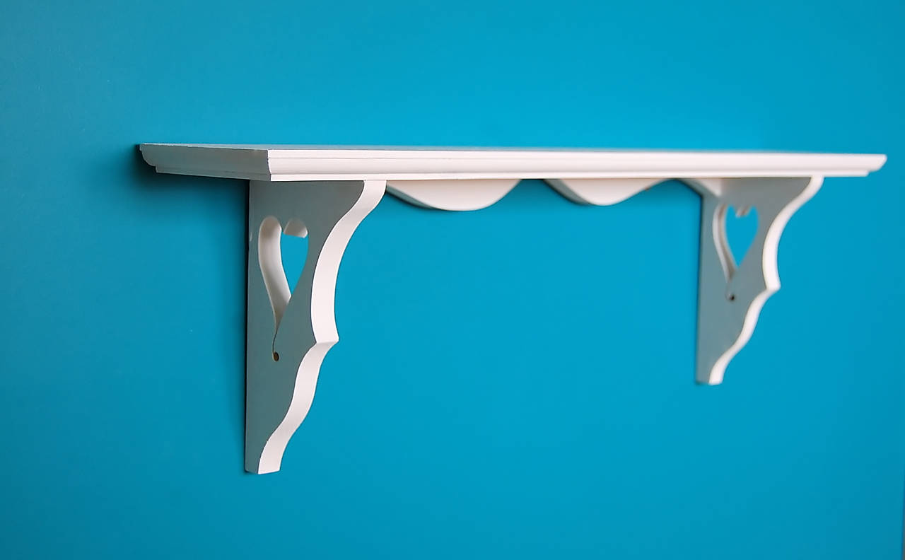 jednoduchá vintage polica Montana so srdiečkami z masívneho smrekového